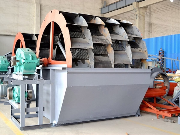 在輪斗洗砂機(jī)的工作過程中,砂石的翻滾和研磨主要依靠輪斗的旋轉(zhuǎn)來實現(xiàn)。具體來說,當(dāng)砂石通過給料設(shè)備進(jìn)入洗砂機(jī)的洗槽內(nèi)后,輪斗開始旋轉(zhuǎn)。